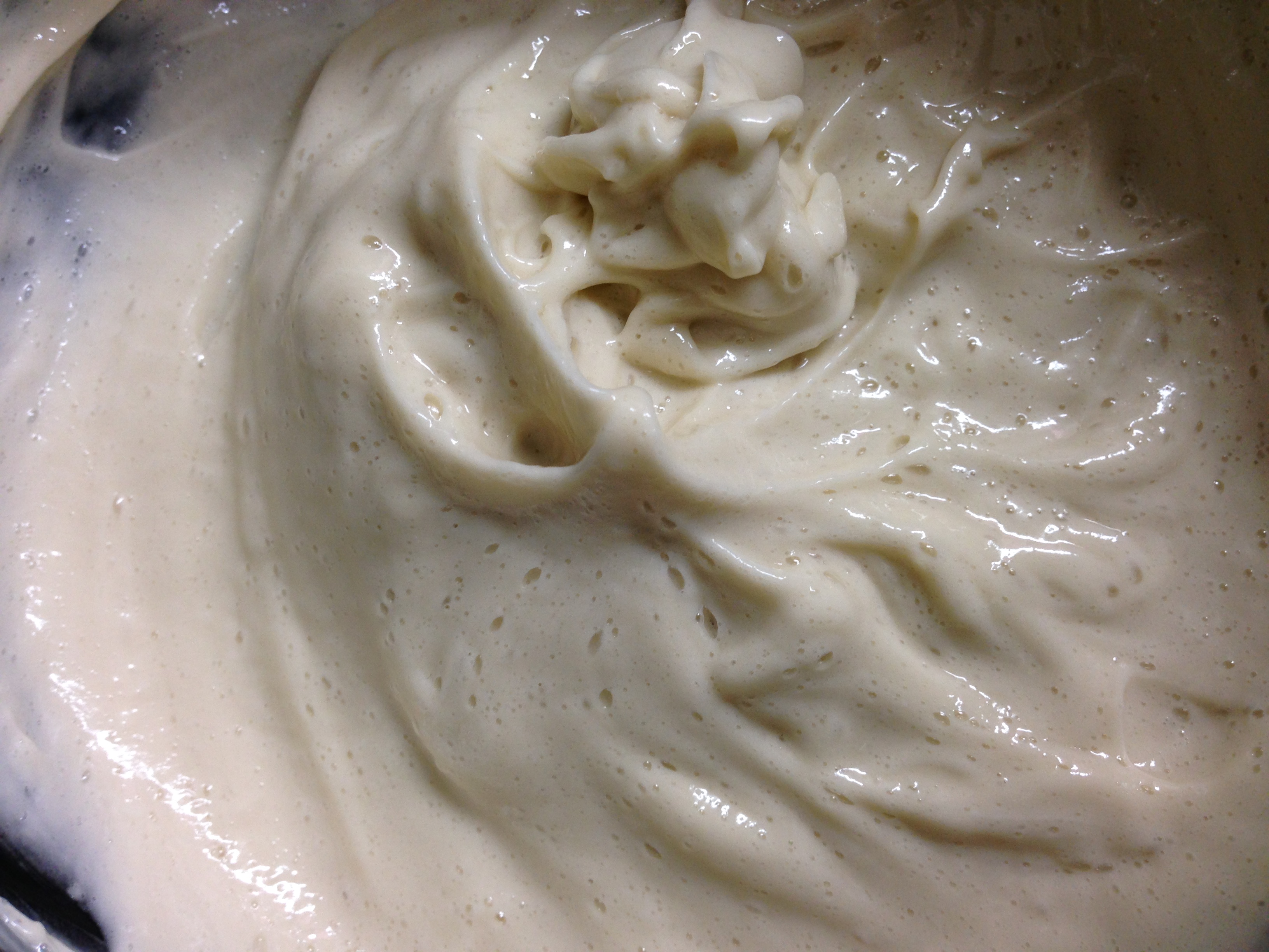 しっかりホイッパー(泡立器?)で生クリームを作る気持ちで