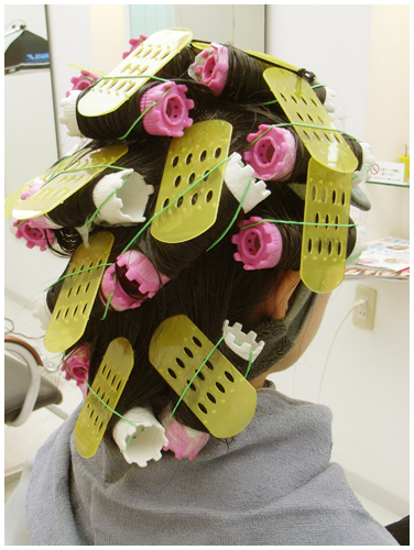 毛先パーマ残のところ 前処理剤(自家製)塗布
