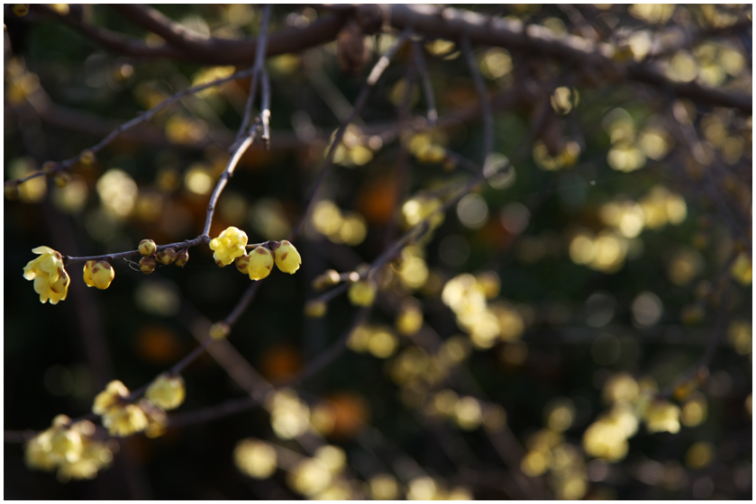 暖かなせいか もう蝋梅(黄色い梅)が満開です