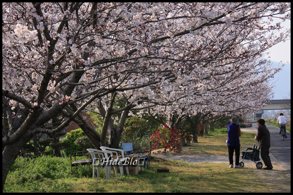 財田川の土手沿いの桜並木も