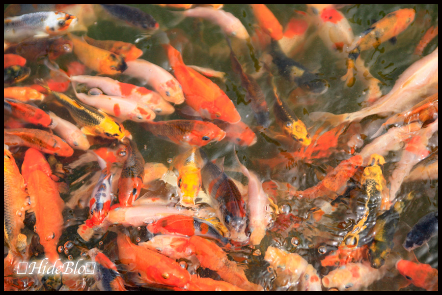 小さい鯉がたくさんいます 寄って来るよ