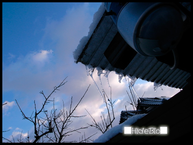 昨日出来た倉庫の屋根の氷柱も