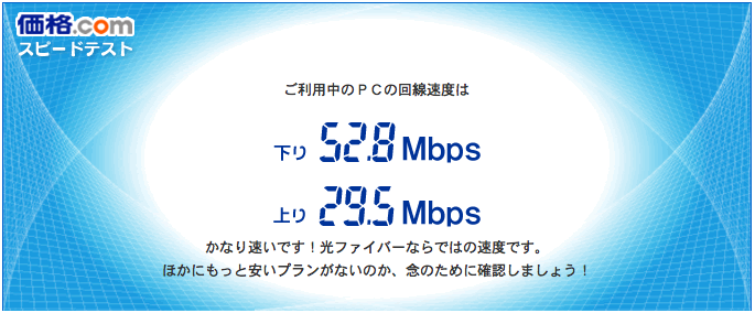 速度テストしたら 50Mbps平均出ています