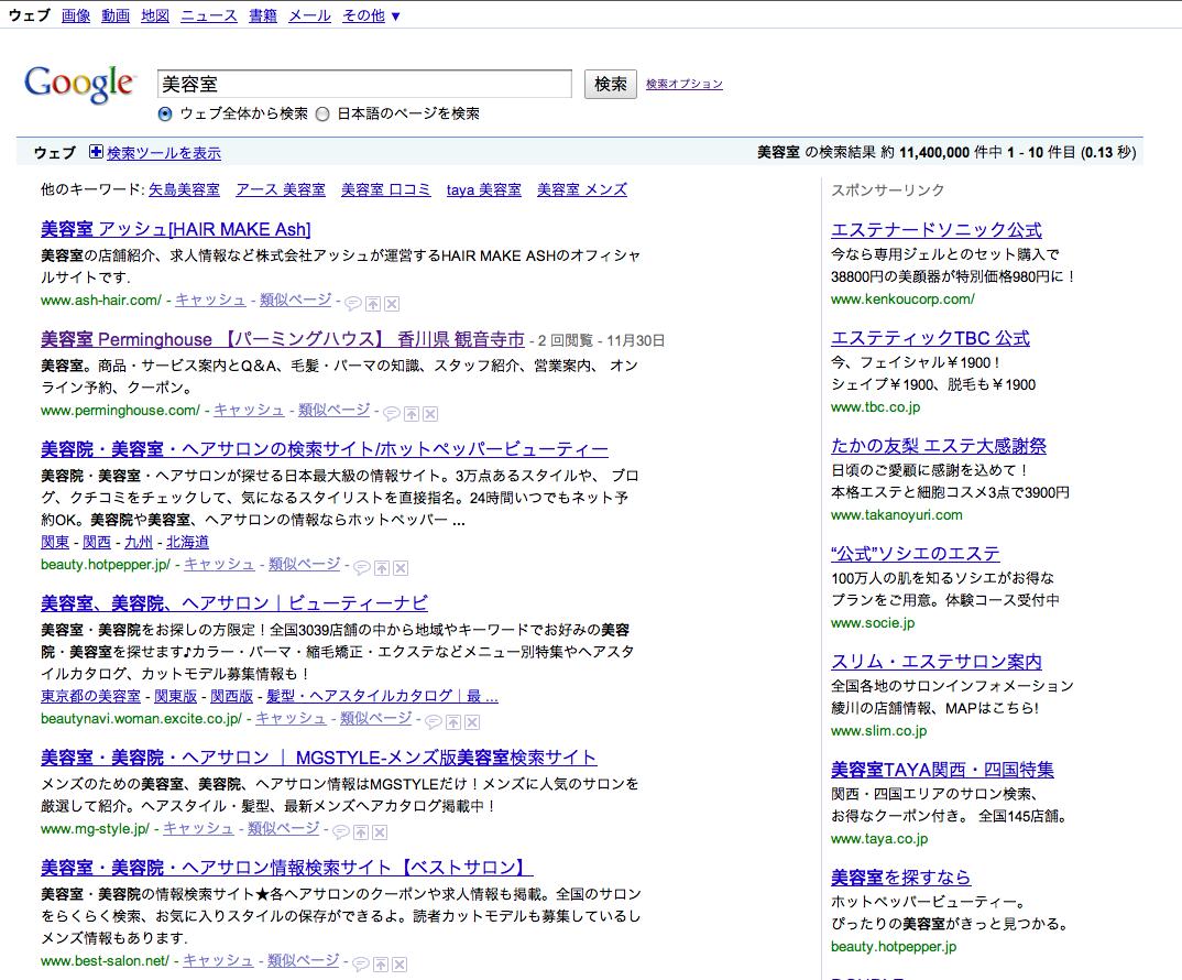 昨日 Googleで『美容室』のキーワードで