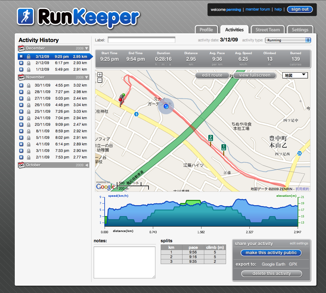 GPSを使って自動的にデータを取ってくれるようになったので
