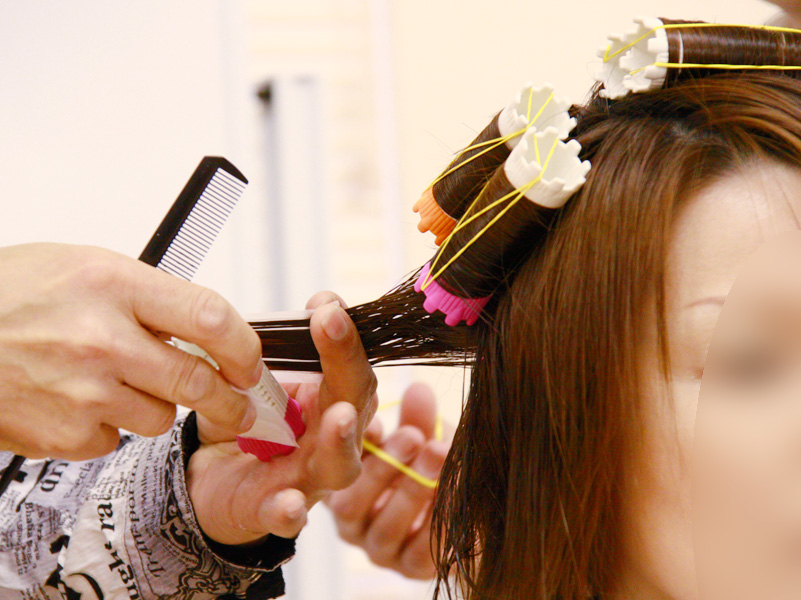 軟毛ショートのトップにボリュームパーマをかけます
