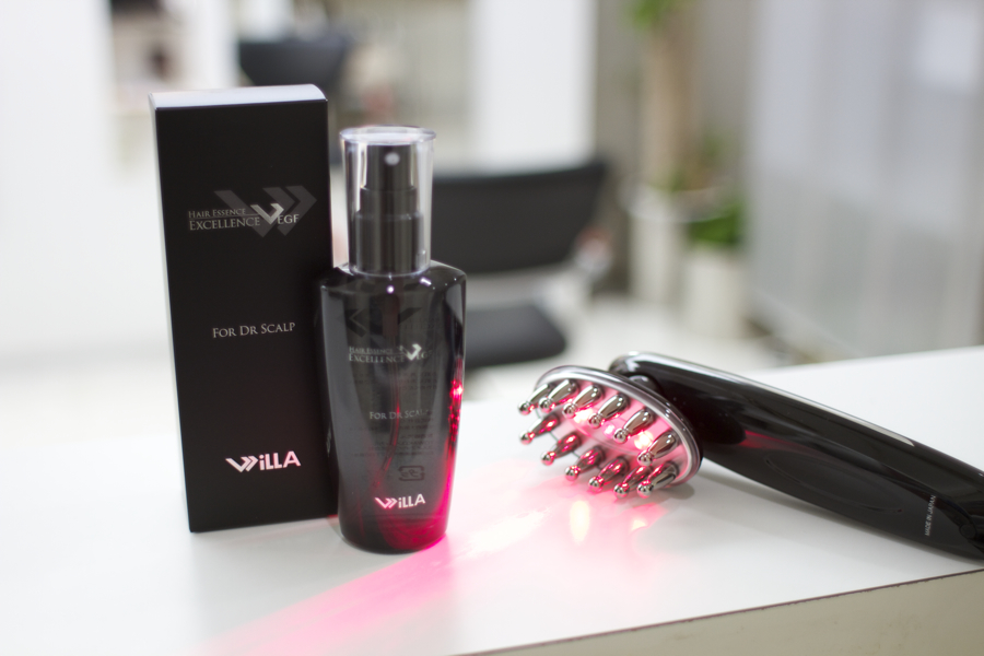 中高周波・EMS ・エレクトロポレーション(痛くない特殊電気穿孔法)というスクランブルパルスでの薬剤浸透効果と 赤色LED&ライトダイオードの光エネルギーでお肌にダメージを与えることなく頭全体を刺激する完全プロ仕様の育毛マシーンを導入しました
